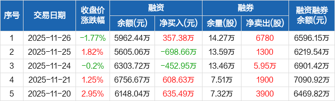三棵树:融资净买入357.38万元,融资余额5962.44万元(11-26)
