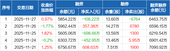 三棵树:融资净偿还108.22万元,融资余额5854.22万元(11-27)