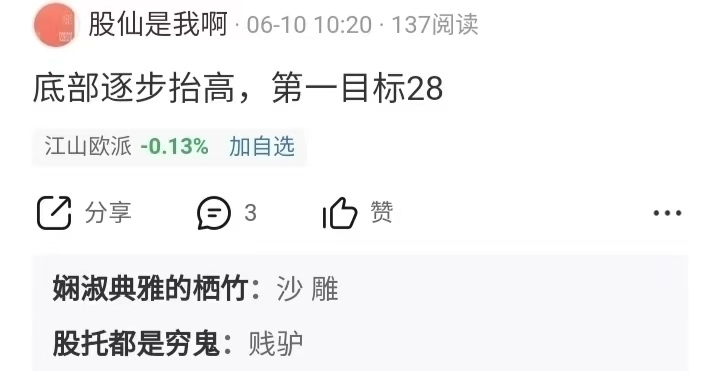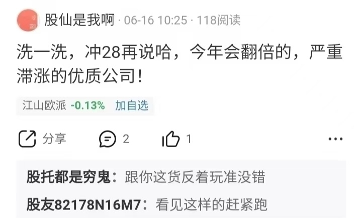 温馨提示: 1.根据《证券法》规定,禁止编造、传播虚假信息或者误导性信息,扰乱证券市场;2.用户在本社区发表的所有资料、言论等仅代表个人观点,与本网站立场无关,不对您构成任何投资建议。用户应基于自己的独立判断,自行决定证券投资并承担相应风险。《东方财富社区管理规定》