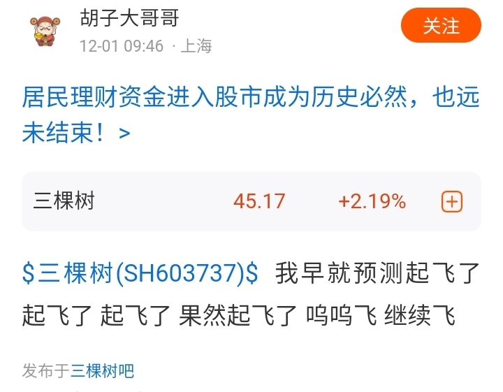 炒股太简单了,不用看盘,盯着起飞哥@胡子大哥哥9点46分,起飞哥一起飞,立刻清仓