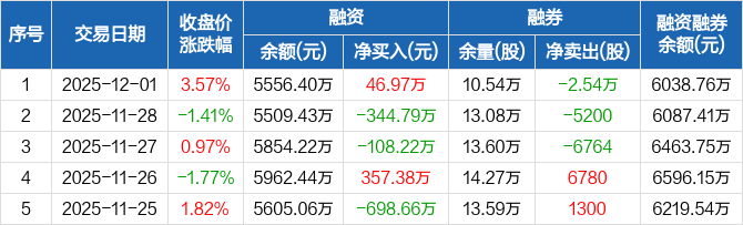 三棵树:融资净买入46.97万元,融资余额5556.4万元(12-01)