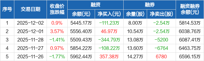 三棵树:融资净偿还111.23万元,融资余额5445.17万元(12-02)