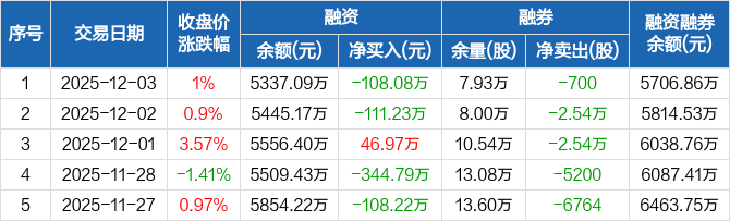 三棵树:融资净偿还108.08万元,融资余额5337.09万元(12-03)