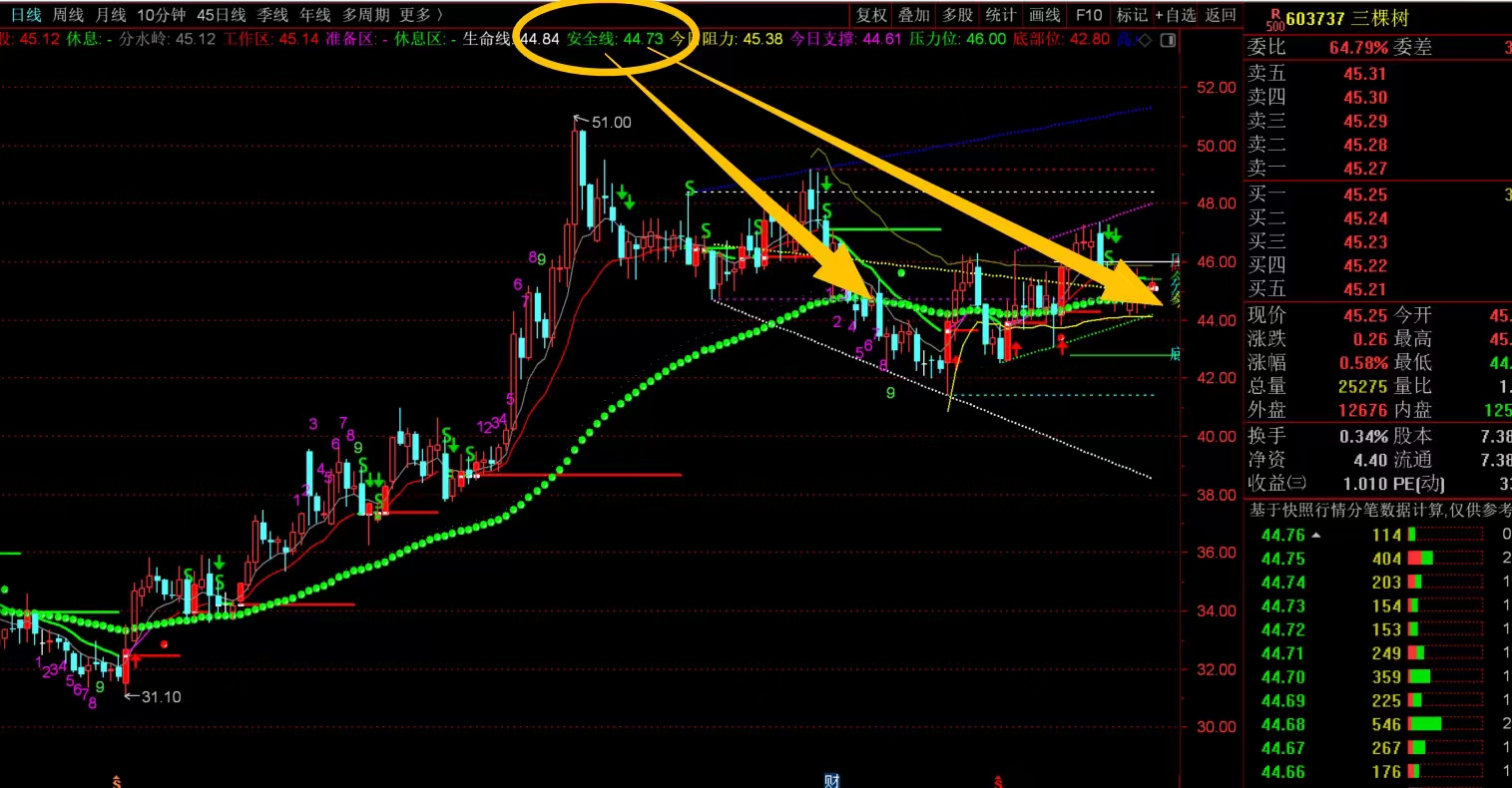 $三棵树(SH603737)$ 前期走势比较稳健,一直震荡上行,整体趋势保持得比较好。但近期回调下来,跌破了安全线,这几周都在安全线位置上下折腾,接下来就要重点盯着安全线的得失,能站稳都好说,但如果有效跌破就要严格控制仓位应对,防着连续回落的下杀风险。#炒股日记# #收盘点评#