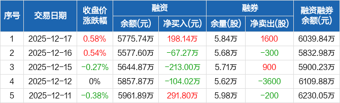 三棵树:融资净买入198.14万元,融资余额5775.74万元(12-17)