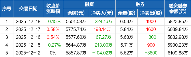 三棵树:融资净偿还224.16万元,融资余额5551.58万元(12-18)