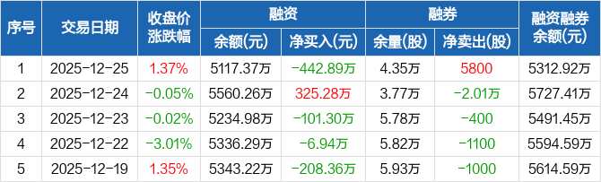 三棵树:融资净偿还442.89万元,融资余额5117.37万元(12-25)