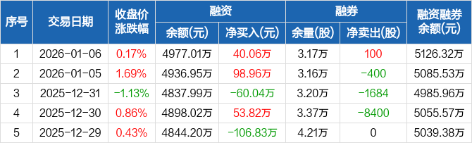 三棵树:融资净买入40.06万元,融资余额4977.01万元(01-06)