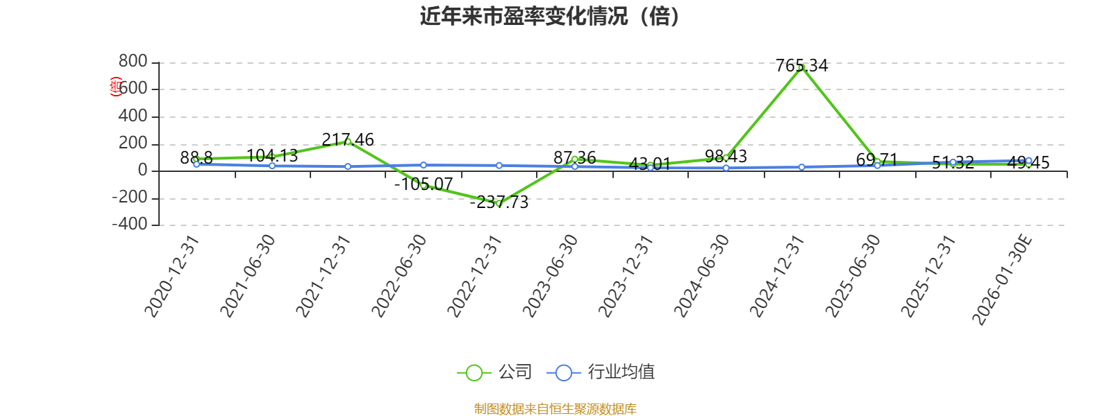 以本次披露业绩预告均值计算,公司近年市盈率(TTM)图如下所示: