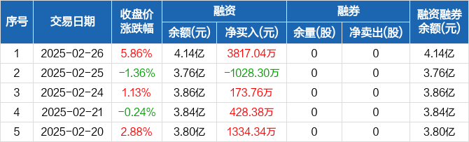 泰晶科技:融资余额4.14亿元,创历史新高(02-26)