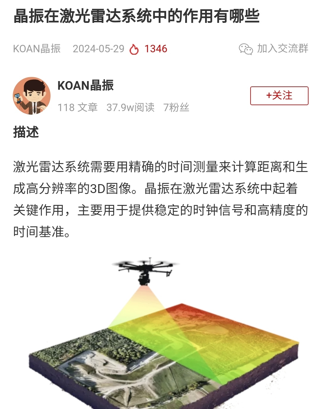 $泰晶科技(SH603738)$ 晶振元件在激光雷达的重要性
