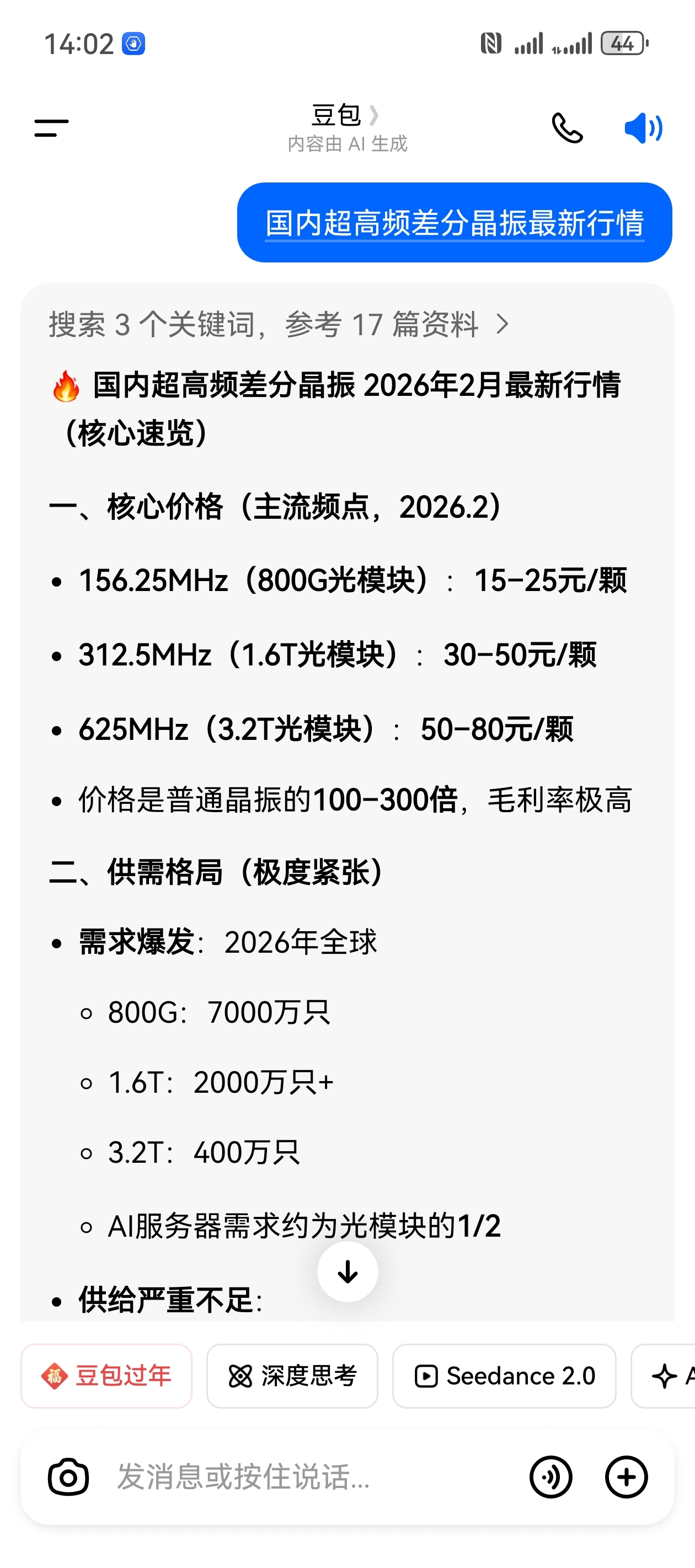 目前国内超高频差分晶振的最新行情,严重缺货!