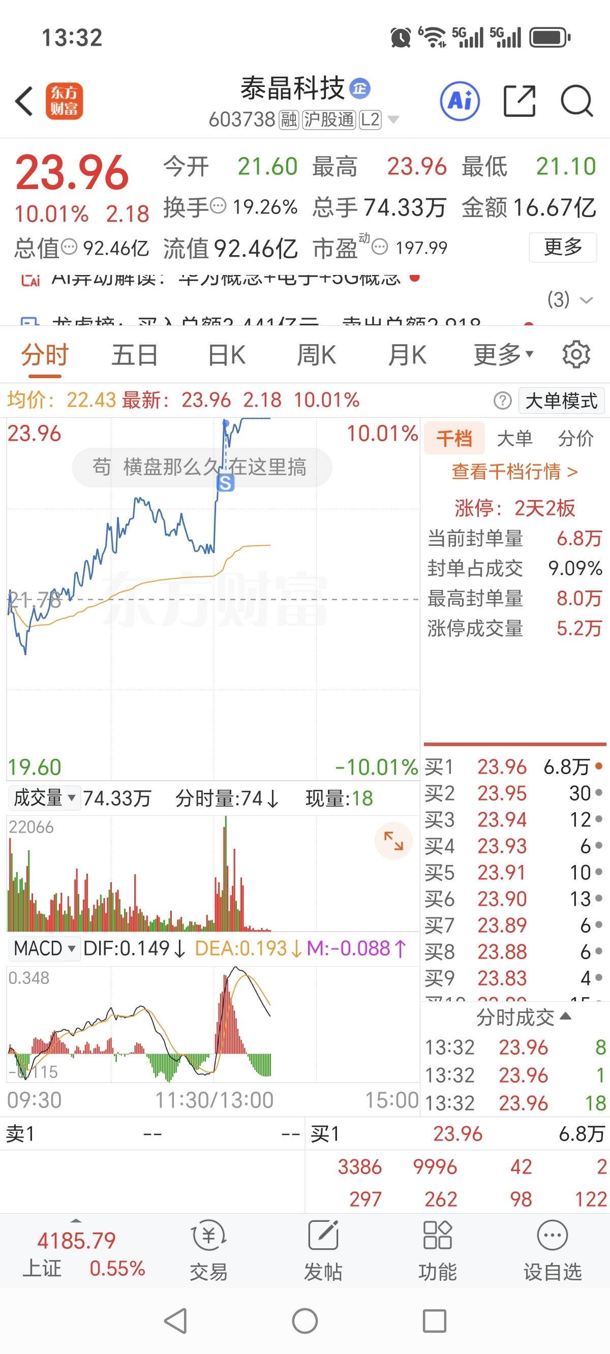 $泰晶科技(SH603738)$ 祝大家发财,我走了