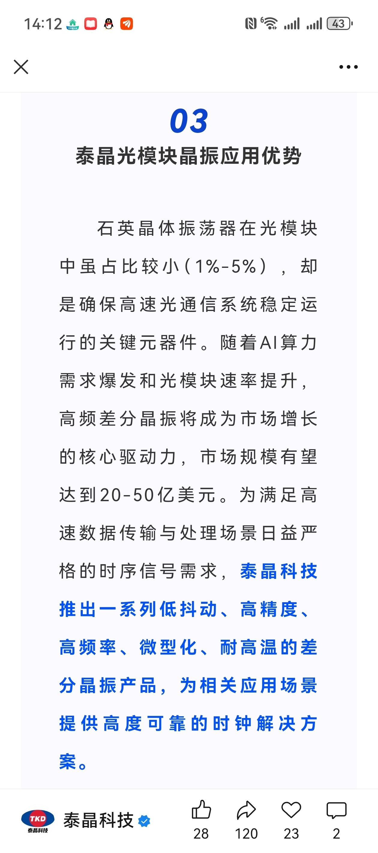 泰晶不简单,能跟英伟达华为这样的大厂合作,在光模块领域国产替代,预期拉满!!