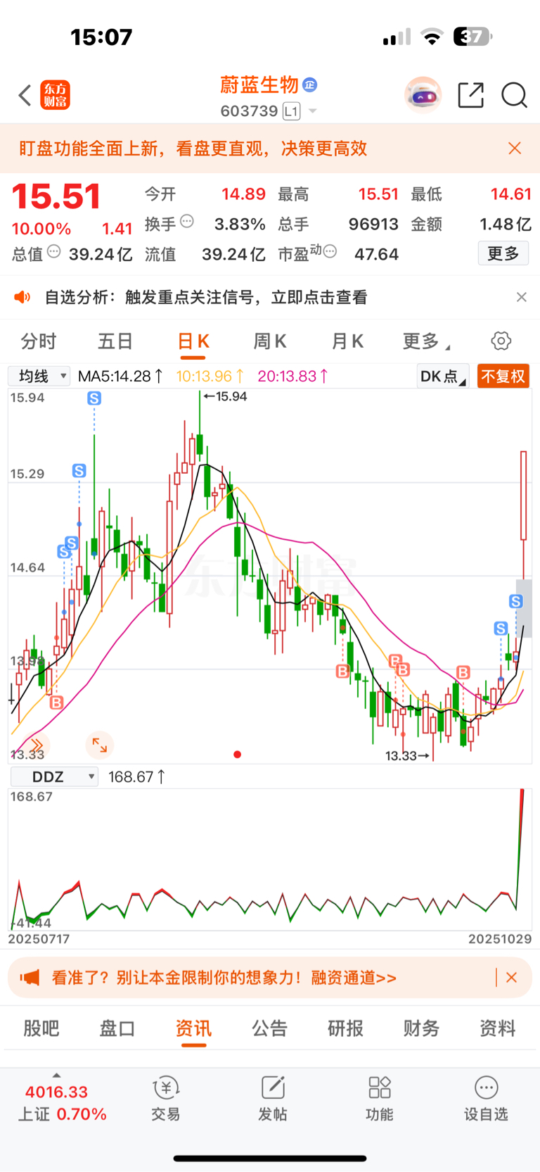 $蔚蓝生物(SH603739)$ 就差我这5000股