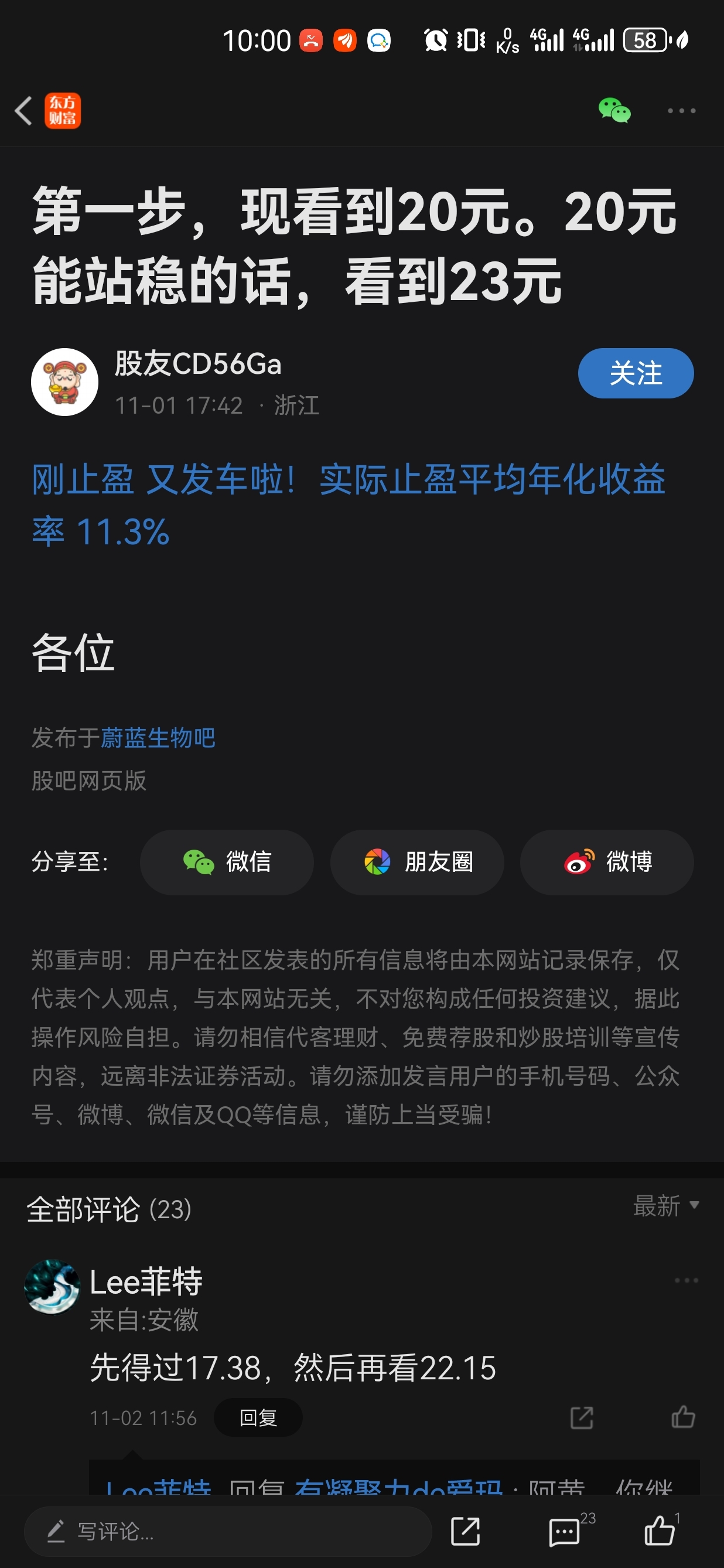 温馨提示: 1.根据《证券法》规定,禁止编造、传播虚假信息或者误导性信息,扰乱证券市场;2.用户在本社区发表的所有资料、言论等仅代表个人观点,与本网站立场无关,不对您构成任何投资建议。用户应基于自己的独立判断,自行决定证券投资并承担相应风险。《东方财富社区管理规定》