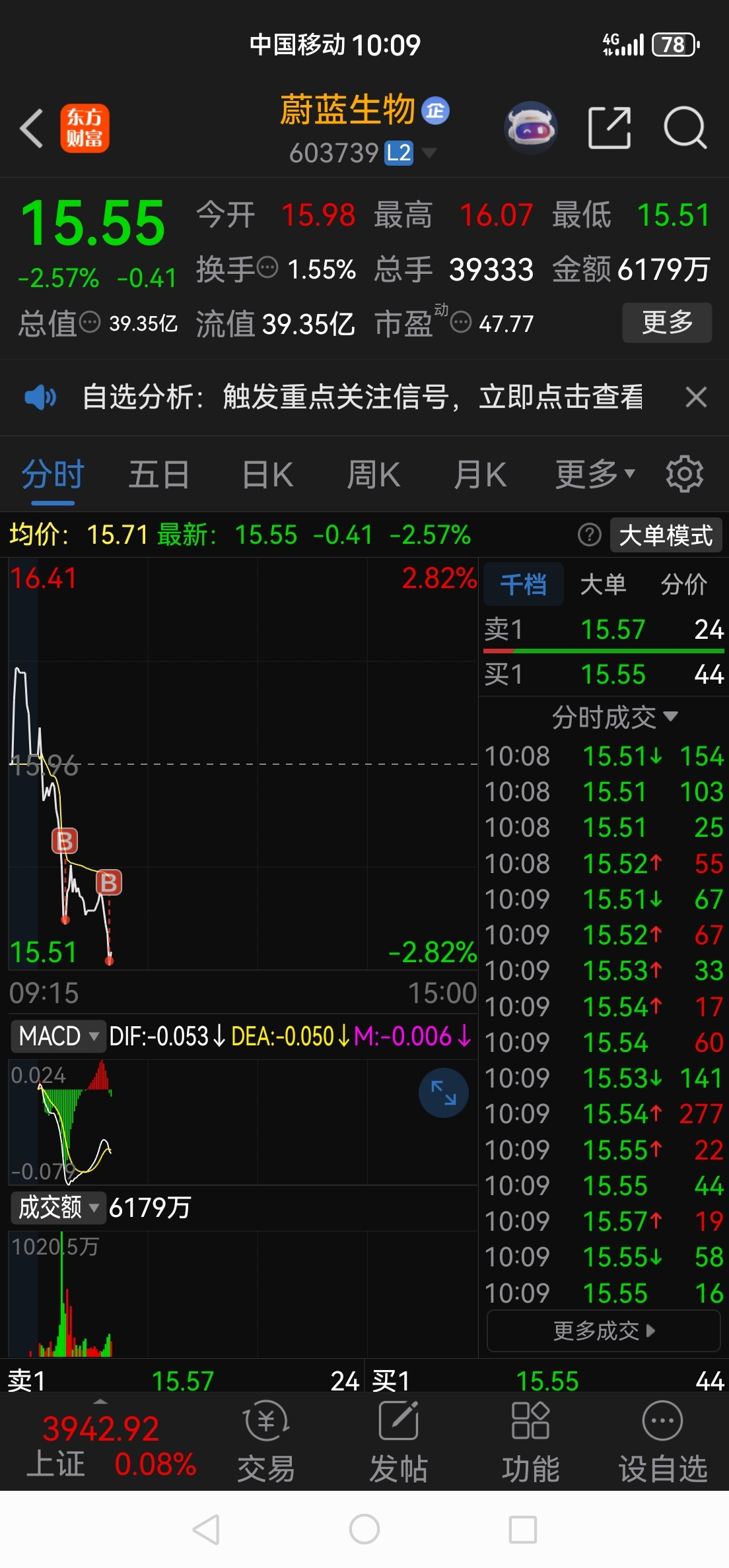 $蔚蓝生物(SH603739)$ 买200股观察观察