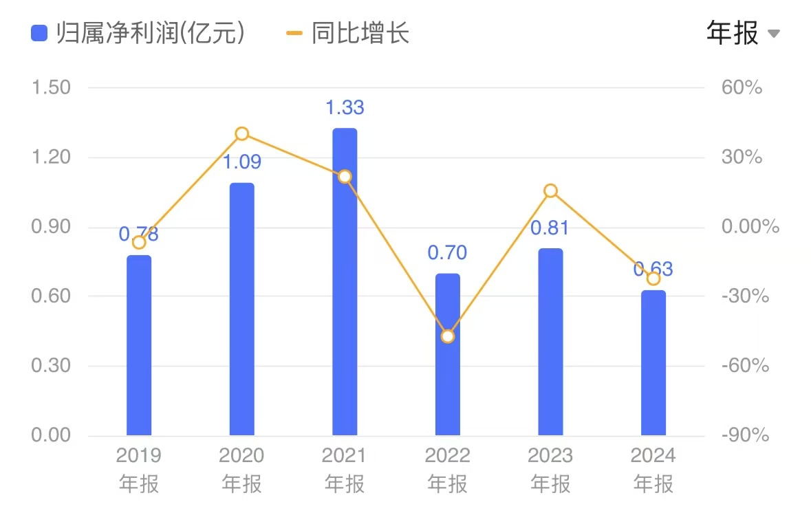 近几年,蔚蓝生物净利润持续波动,2022年至2024年,公司净利润分别为6984.20万元、8070.69万元、6263.75万元。