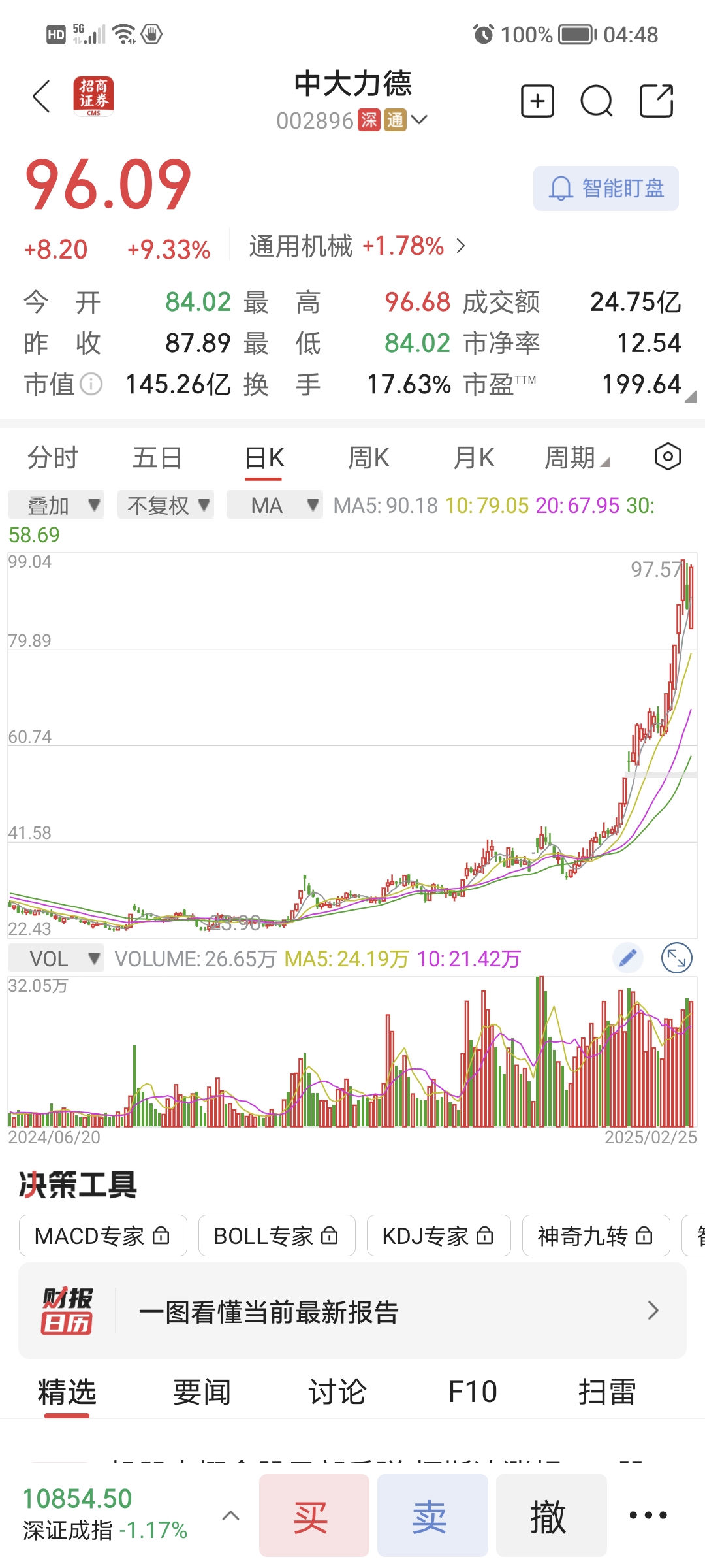 明天开始复制中大力德的走势,高开高走先拉一波