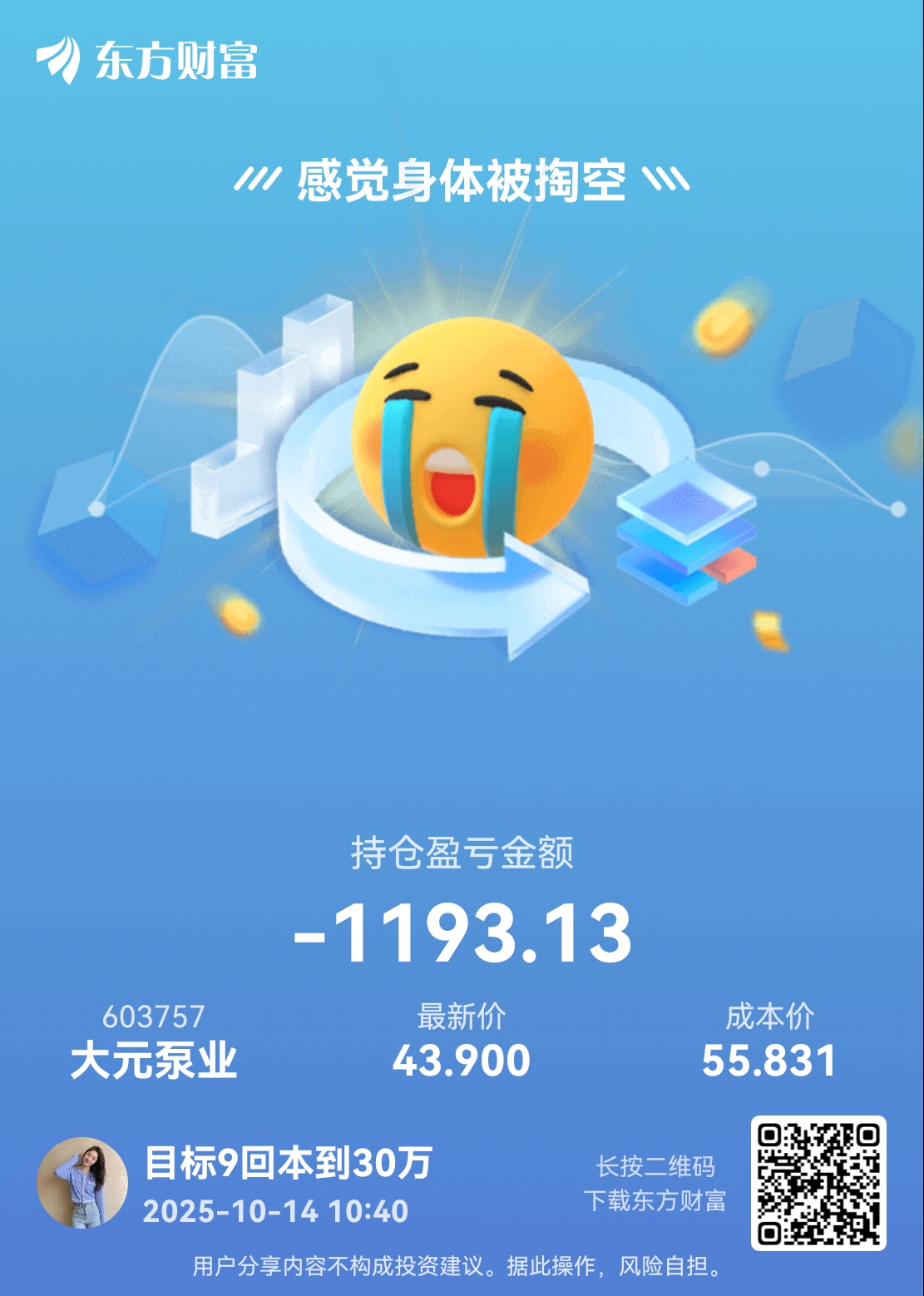 $大元泵业(SH603757)$ 真是个,天天下跌