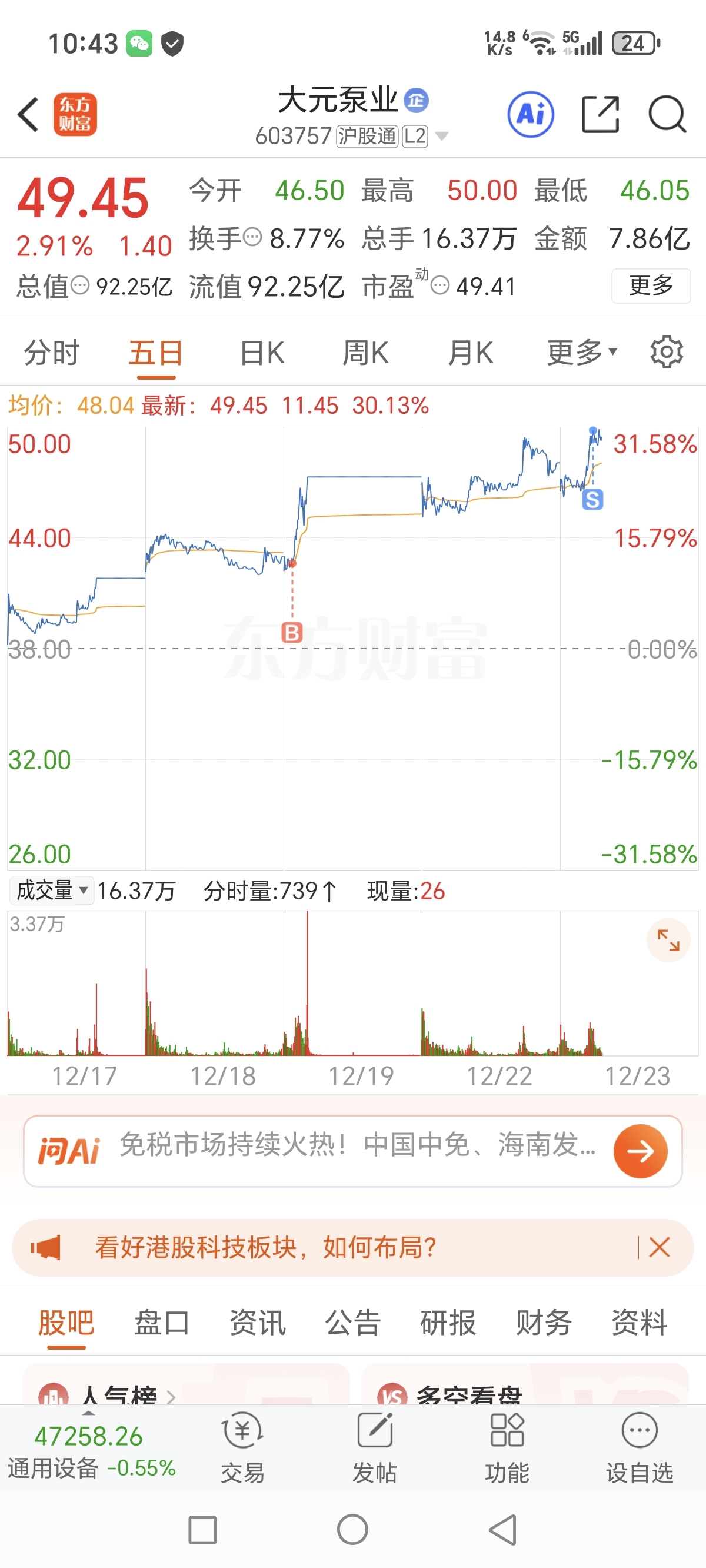 $大元泵业(SH603757)$ 走了走了,你们玩吧