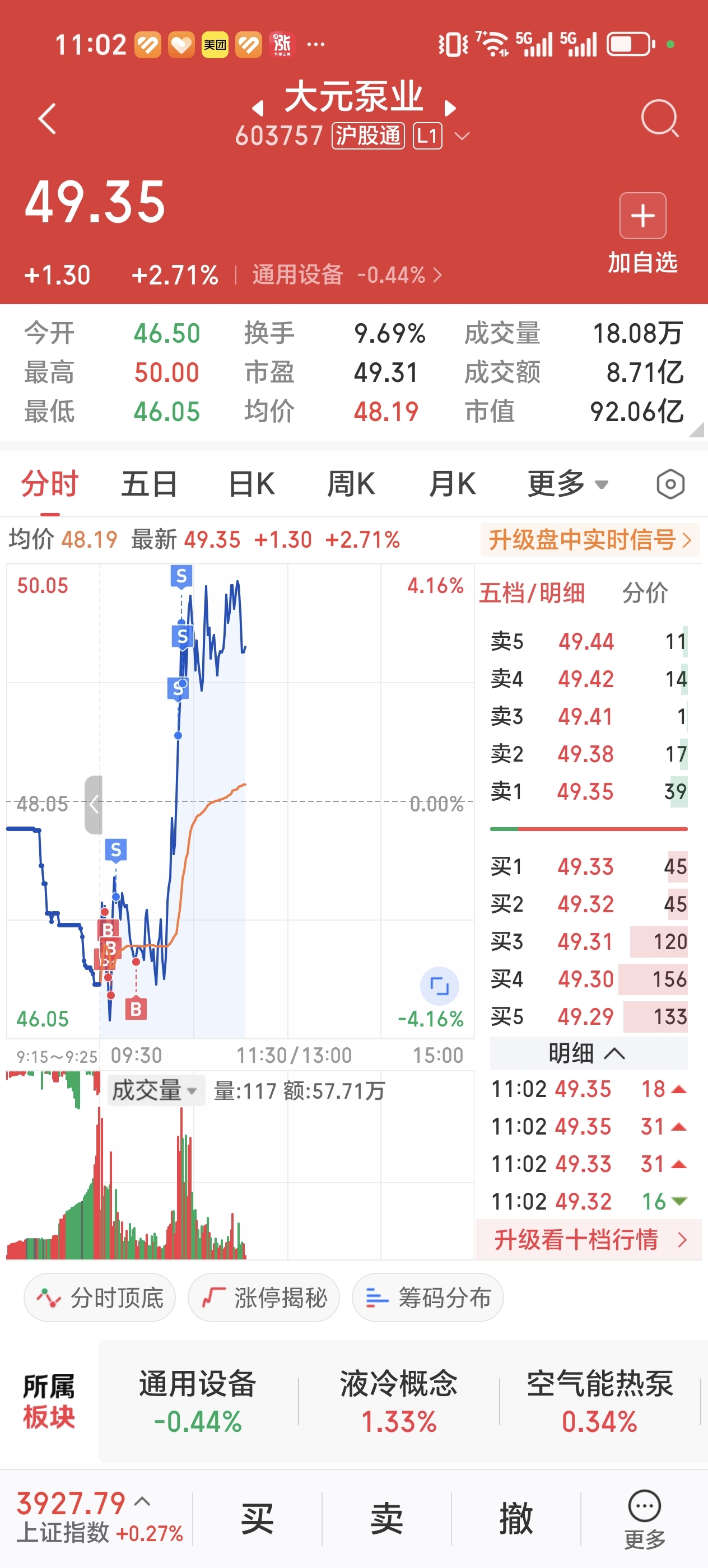 $大元泵业(SH603757)$ 短期涨幅有点大,不害怕是假的,先兑现一部分吧