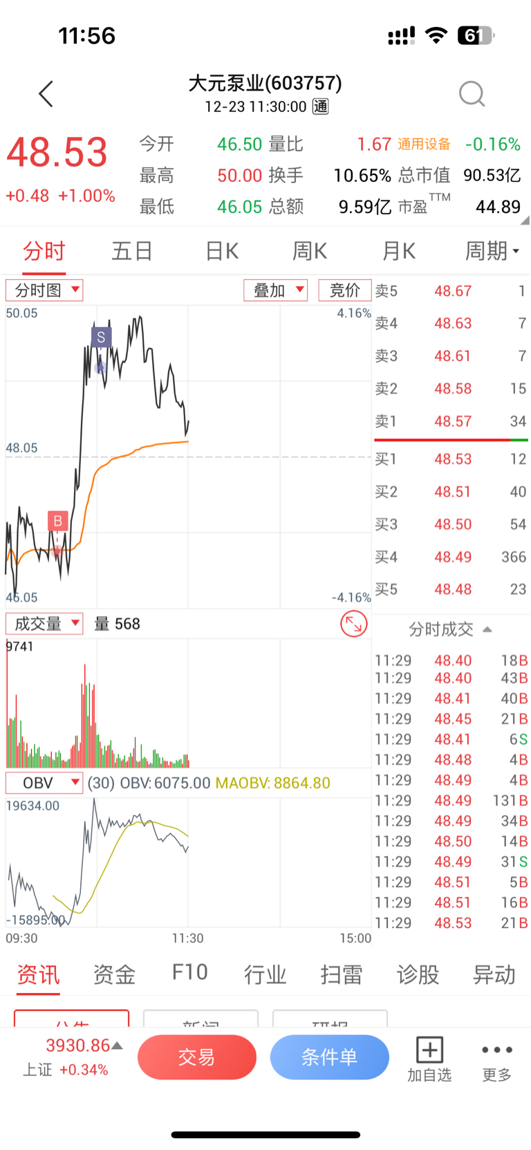 $大元泵业(SH603757)$ 戒骄戒躁,先T6个点稳住利润,企稳继续光顾