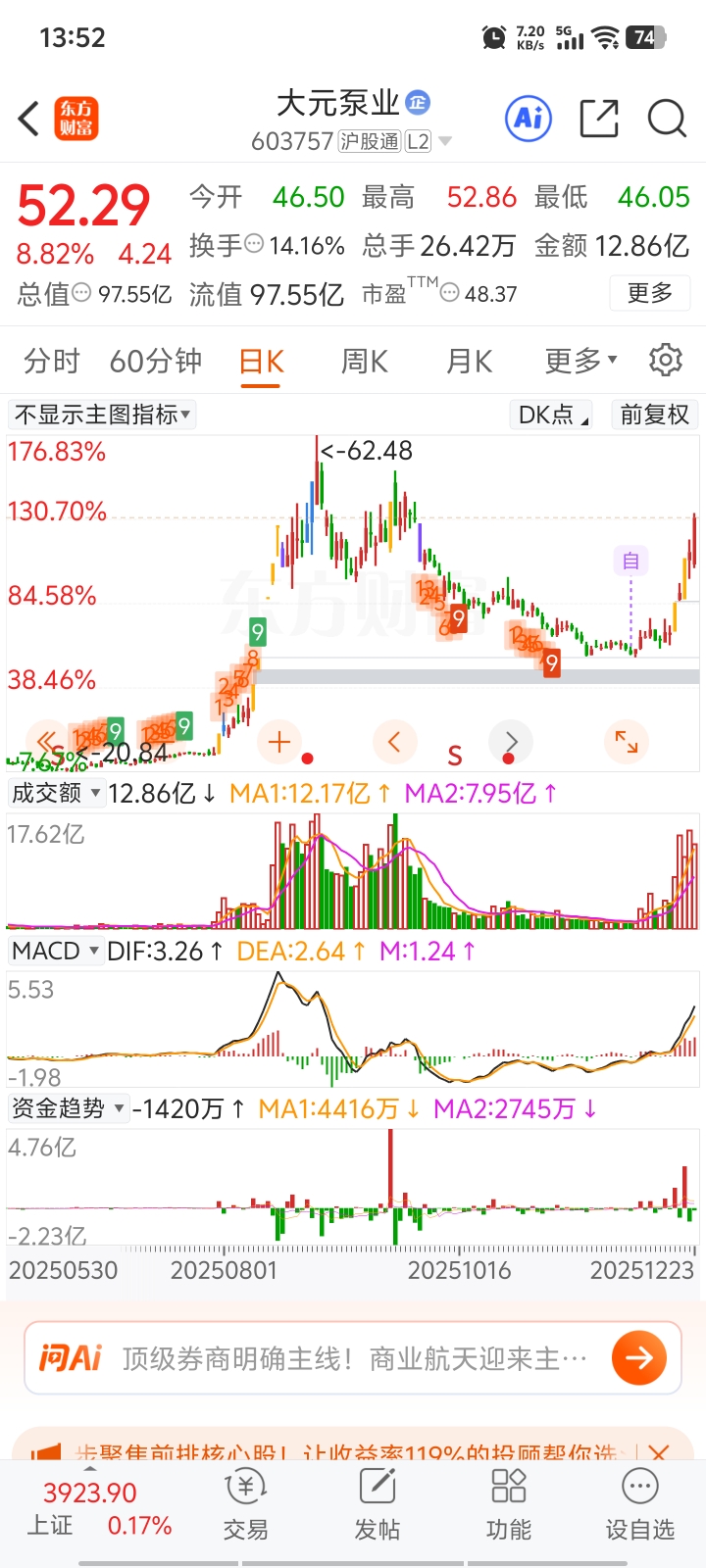 $大元泵业(SH603757)$ 抄底爽歪歪
