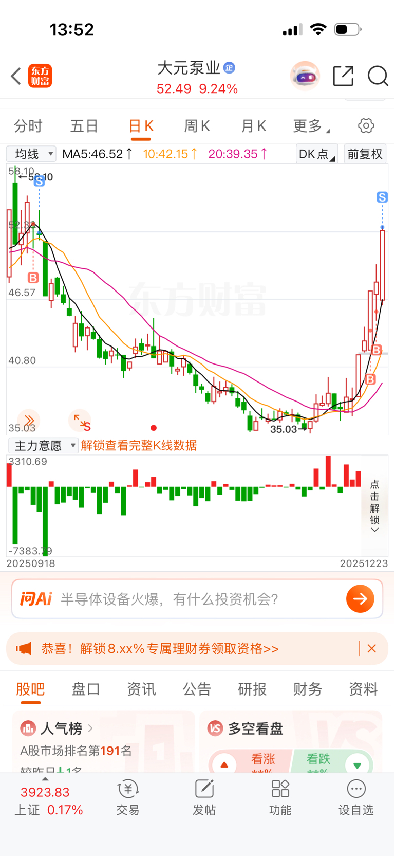 $大元泵业(SH603757)$ 感谢,差点没扛住,留下的挣钱
