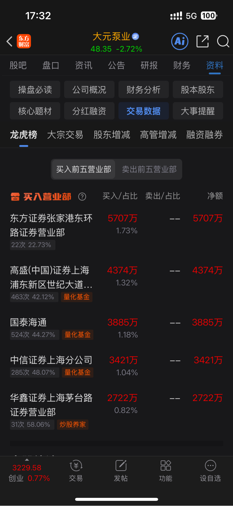 $大元泵业(SH603757)$ 12月19号进来的3个量化加炒股养家,货都没出完,所以今天拉高出货,被洗秃噜皮了,这票有商业航天加液冷概念,两个概念板块都大涨,量化太恶心啦!