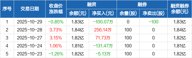 秦安股份:融资净偿还100.07万元,融资余额1.83亿元(10-29)