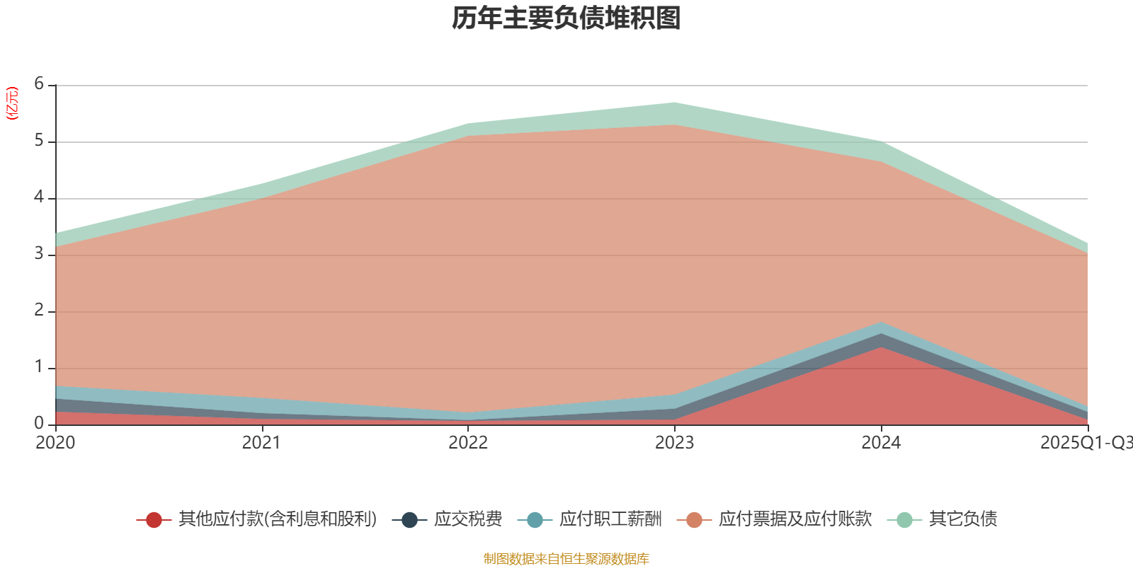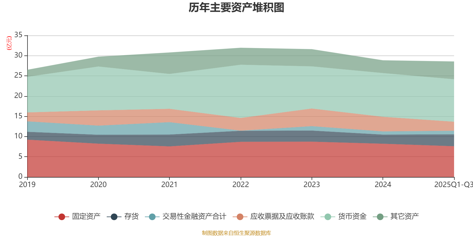 资产重大变化方面,截至2025年三季度末,公司应收票据及应收账款较上年末减少38%,占公司总资产比重下降4.65个百分点;应收款项融资较上年末增加707.01%,占公司总资产比重上升2.55个百分点;存货较上年末增加30.9%,占公司总资产比重上升2.51个百分点;固定资产较上年末减少7.55%,占公司总资产比重下降1.87个百分点。
