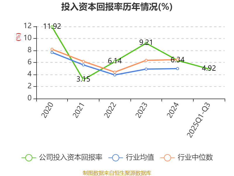 盈利能力方面, 2025年前三季度公司加权平均净资产收益率为5.34%,同比上升0.25个百分点。公司2025年前三季度投入资本回报率为4.92%,较上年同期上升0.29个百分点。