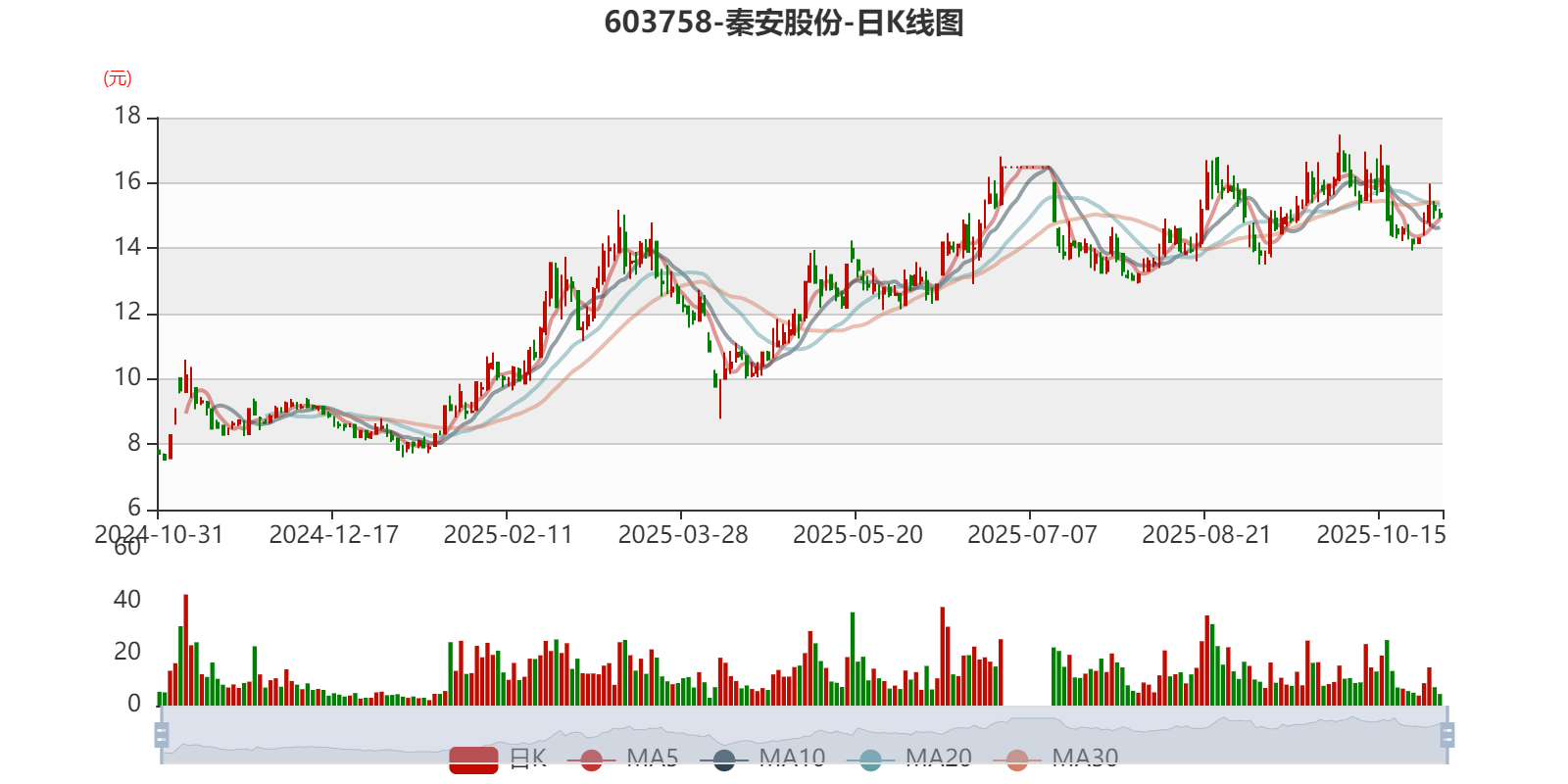 中证智能财讯秦安股份(603758)10月31日披露2025年第三季度报告。前三季度公司实现营业总收入9.91亿元,同比下降16.89%;归母净利润1.31亿元,同比增长2.60%;扣非净利润1.21亿元,同比下降19.15%;经营活动产生的现金流量净额为2.13亿元,同比下降34.36%;报告期内,秦安股份基本每股收益为0.31元,加权平均净资产收益率为5.34%。