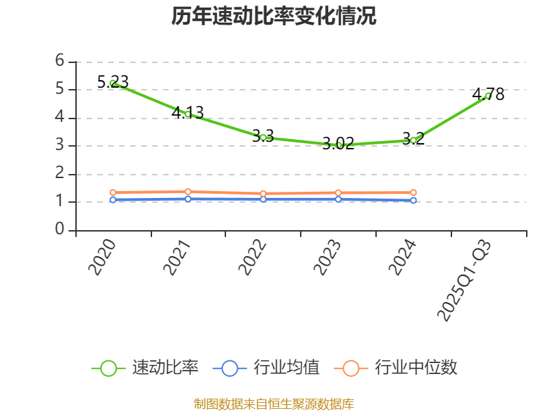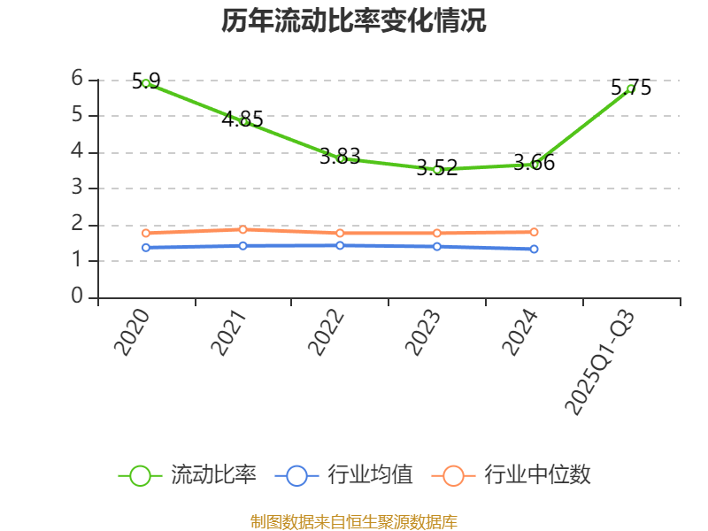 2025年前三季度,公司流动比率为5.75,速动比率为4.78。