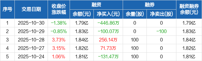 秦安股份:融资净偿还446.86万元,融资余额1.79亿元(10-30)
