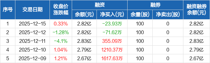 秦安股份:融资净偿还23.93万元,融资余额2.82亿元(12-15)