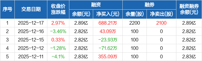 秦安股份:融资余额2.89亿元,创历史新高(12-17)