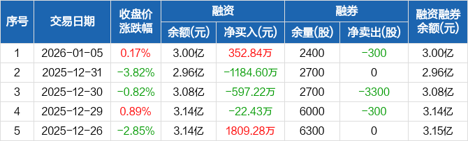 秦安股份:融资净买入352.84万元,融资余额3亿元(01-05)