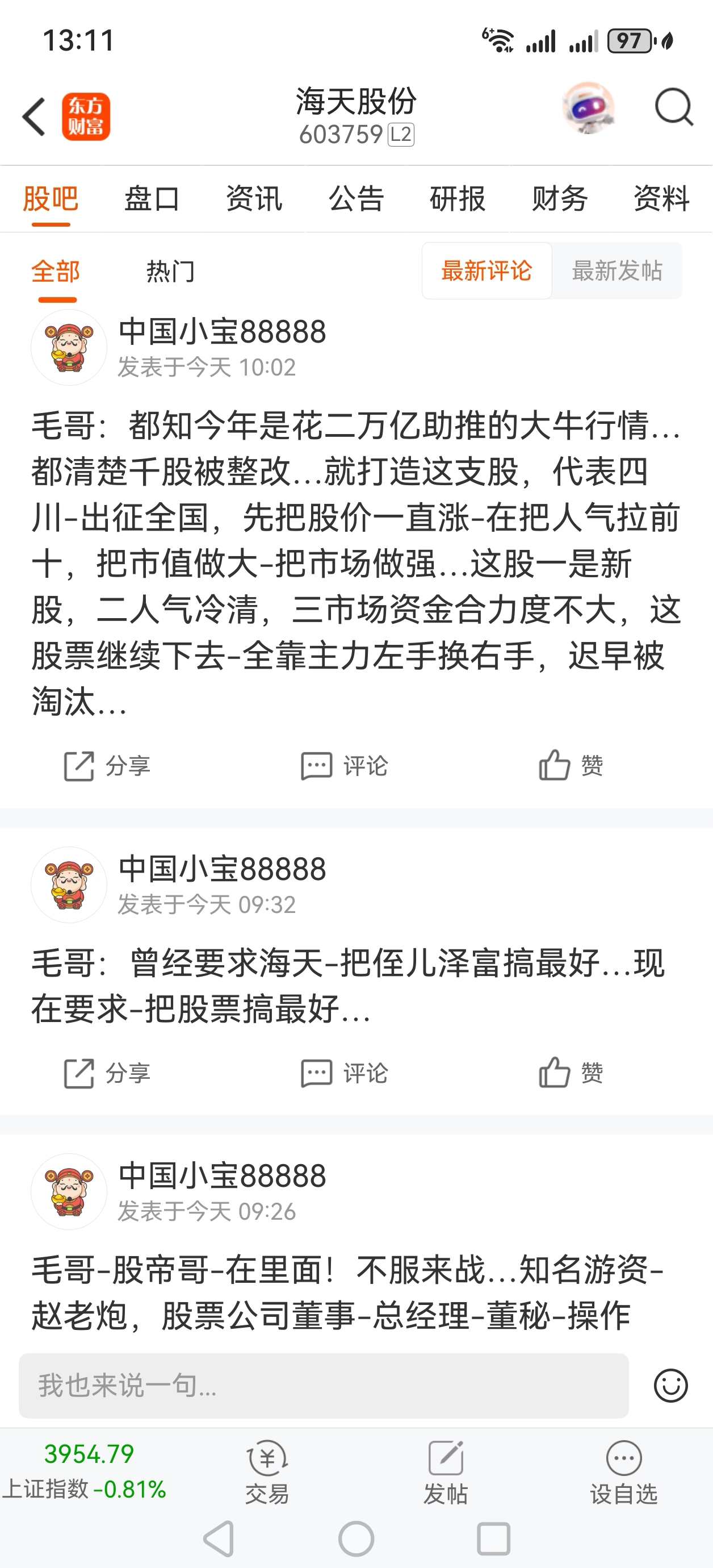 $海天股份(SH603759)$ 这个人好烦,而且还是四川IP