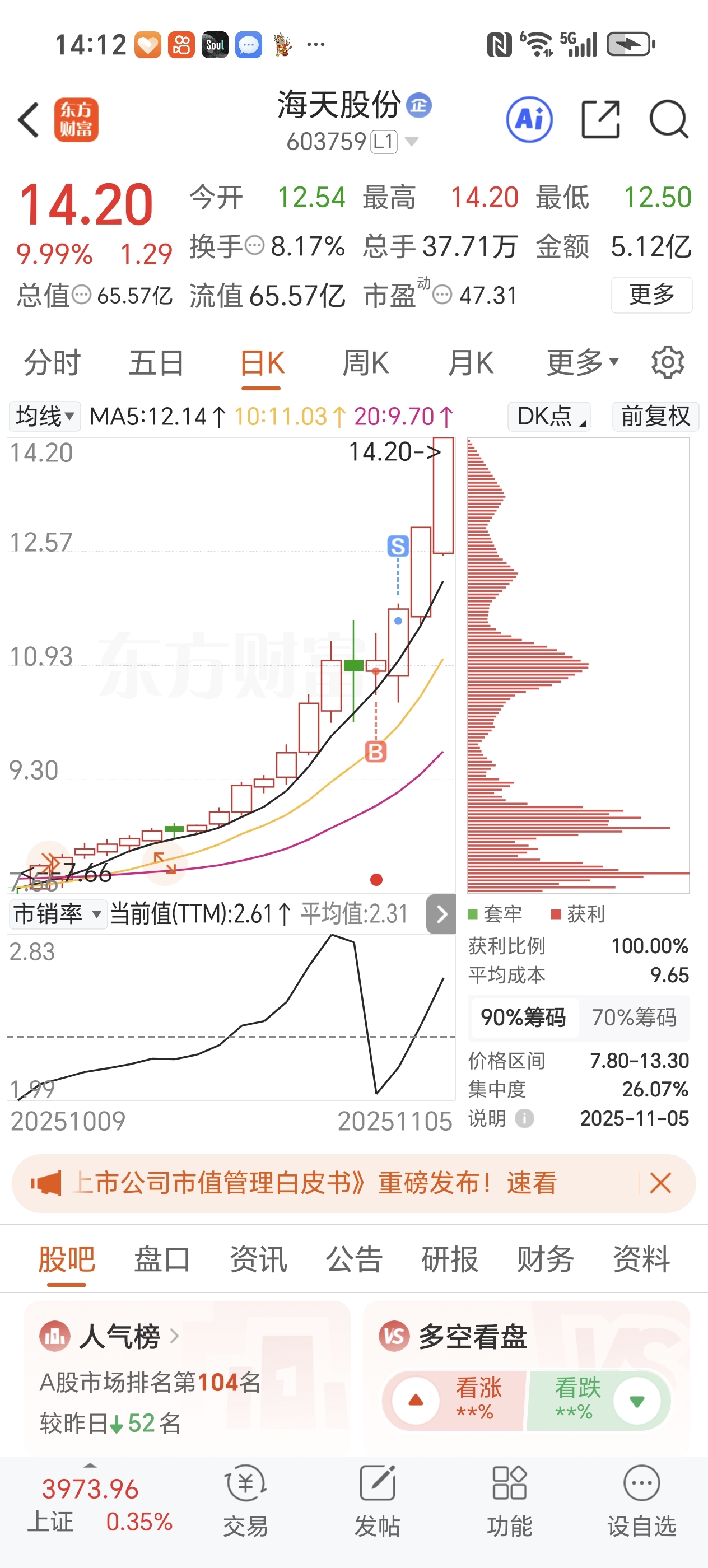 $海天股份(SH603759)$ 这票我确实格局小了,恭喜车上的兄弟