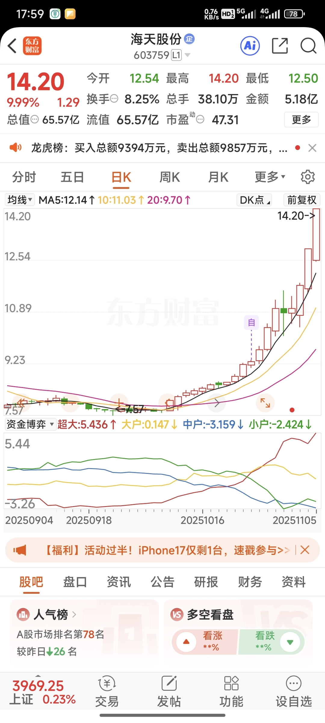 $海天股份(SH603759)$ 当时农行和这个二选一,上了农行的车。肠子都悔青了
