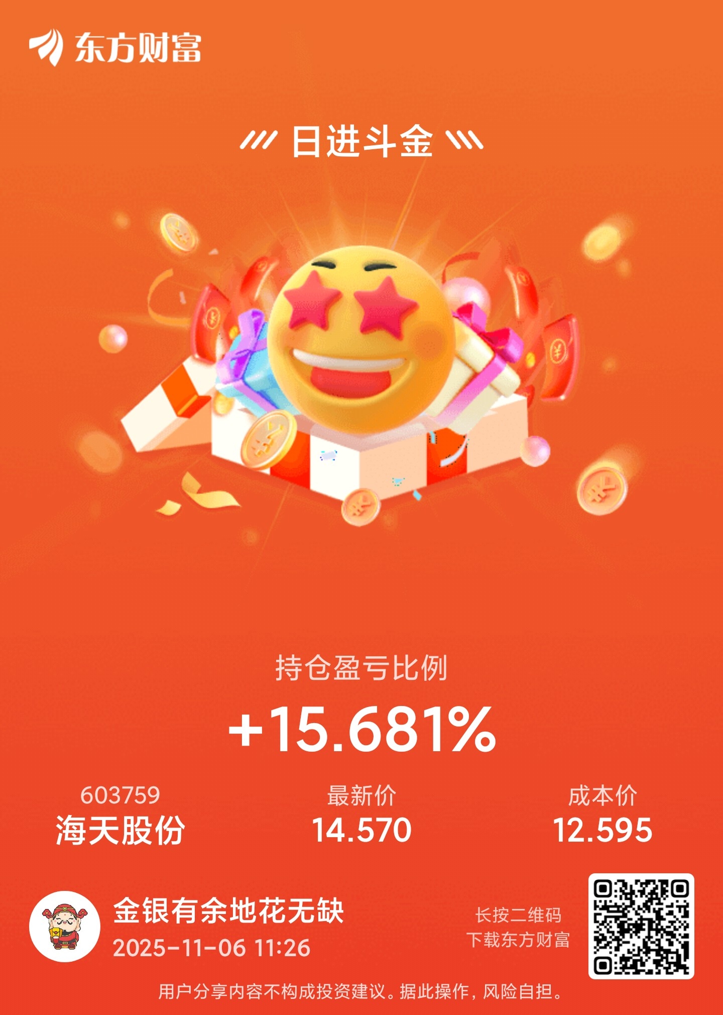 $海天股份(SH603759)$ 这股不行了,今天能跑就跑吧