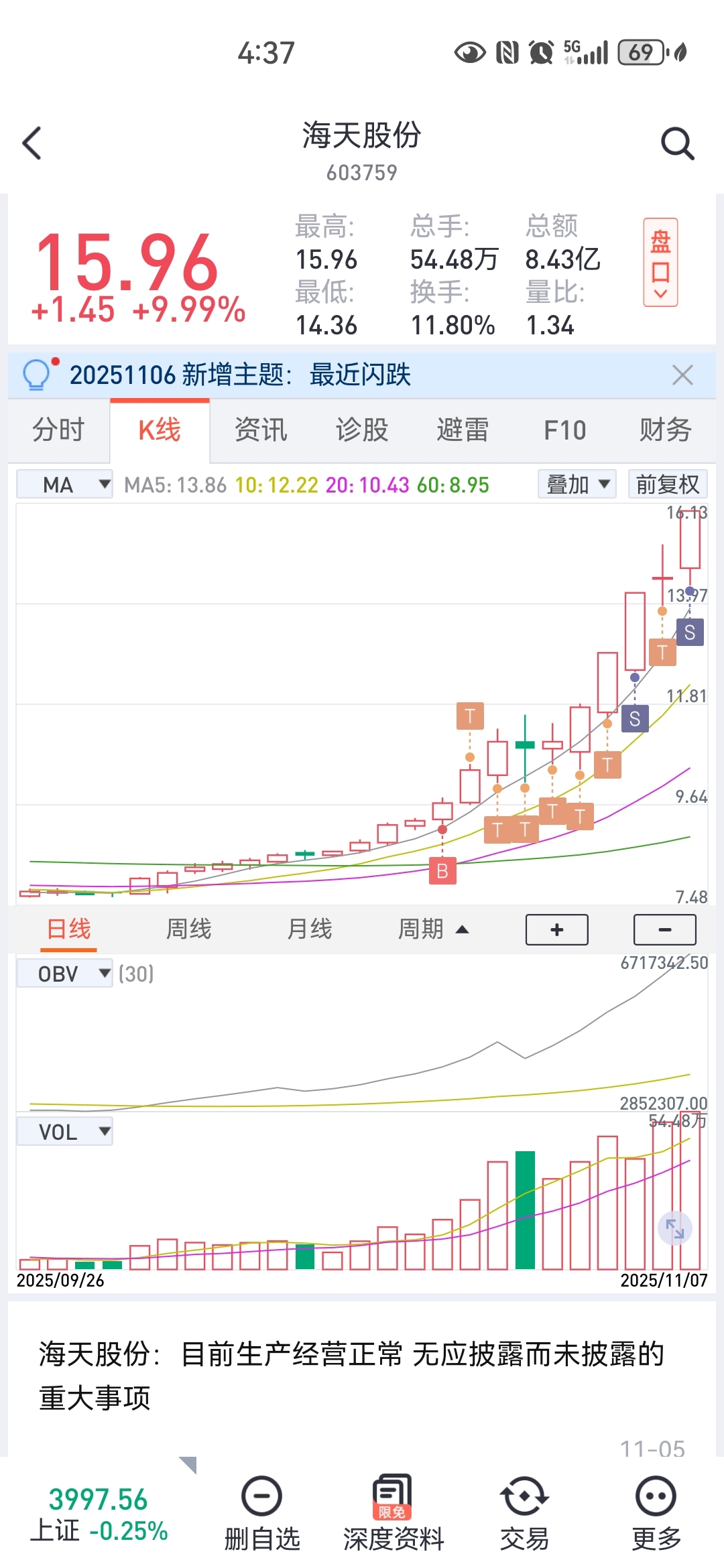 $海天股份(SH603759)$ 好不容易找的一支牛股,被洗了!