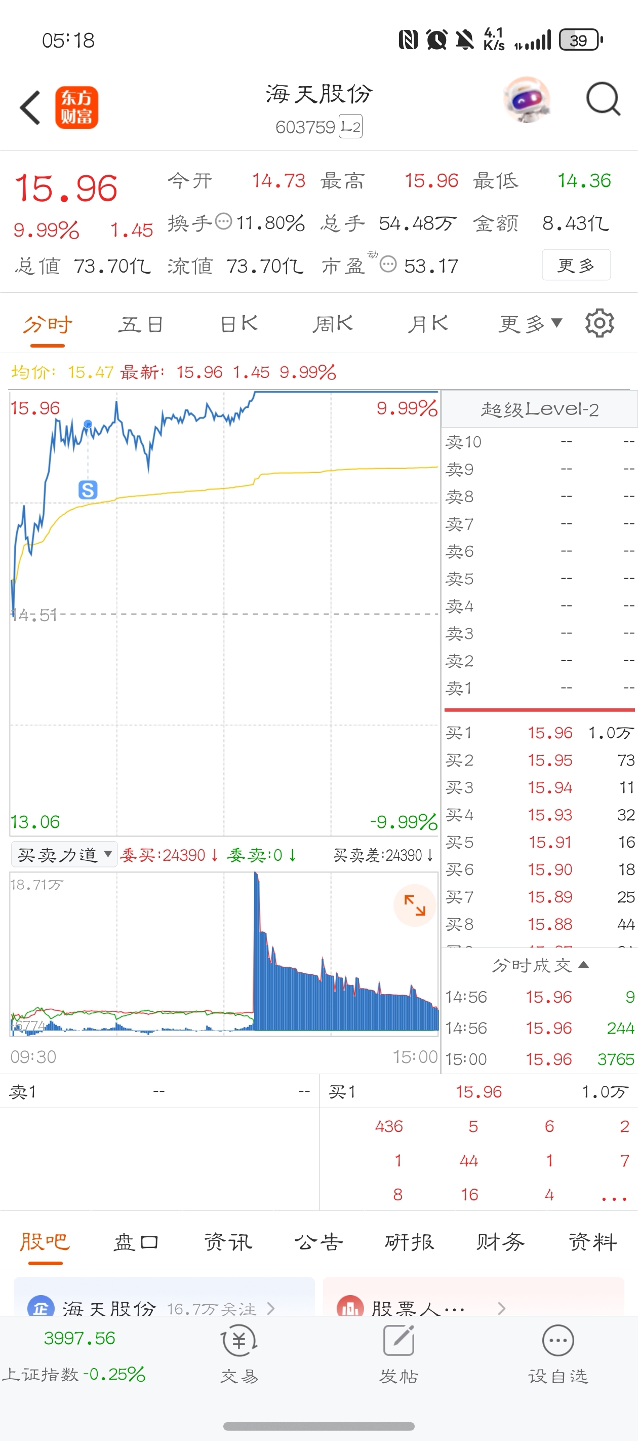 $海天股份(SH603759)$ 观察几天,忍不住了,买了一手,小赚80多块,不敢买多了