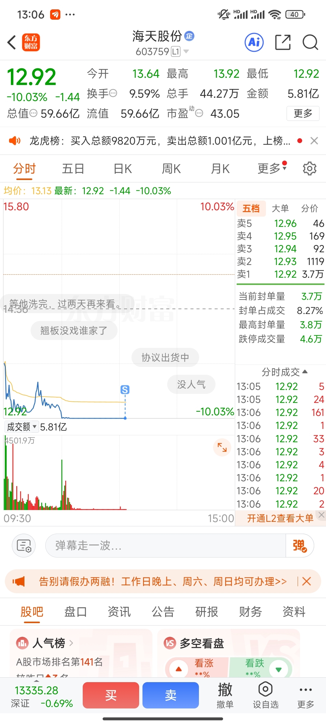 $海天股份(SH603759)$ 啥情况,十一点挂的也能出来???