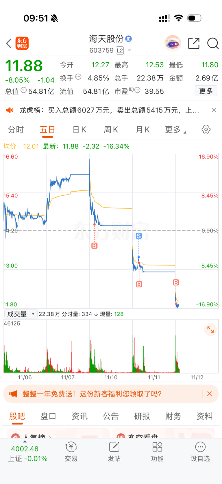 $海天股份(SH603759)$ 兄弟们扛不住了
