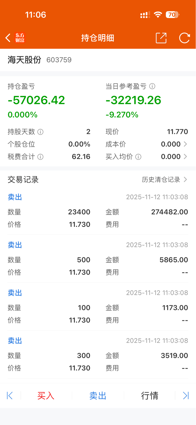 $海天股份(SH603759)$ 亏了五个,留下的兄弟发财。