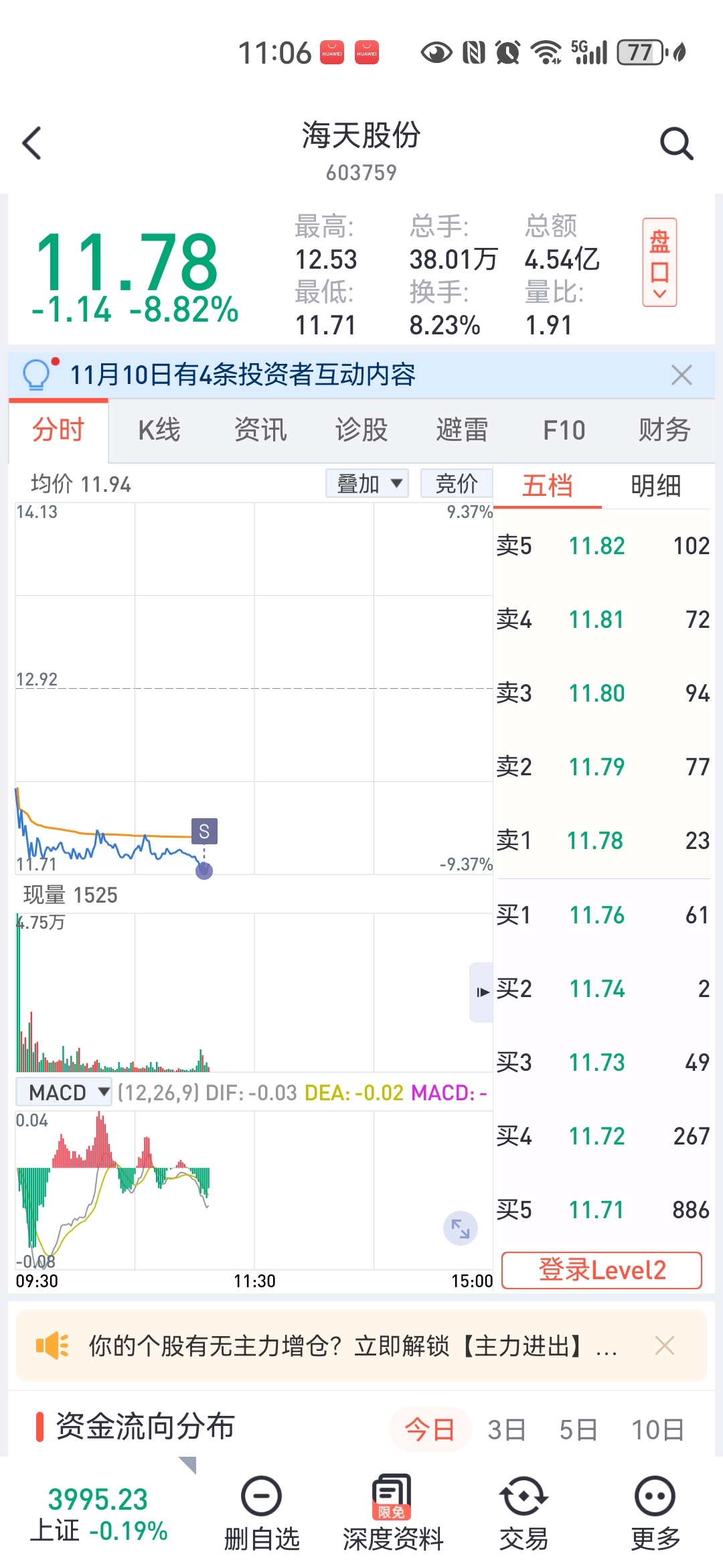 $海天股份(SH603759)$ 好吧!可能是我不该一直守着,我服了你涨吧