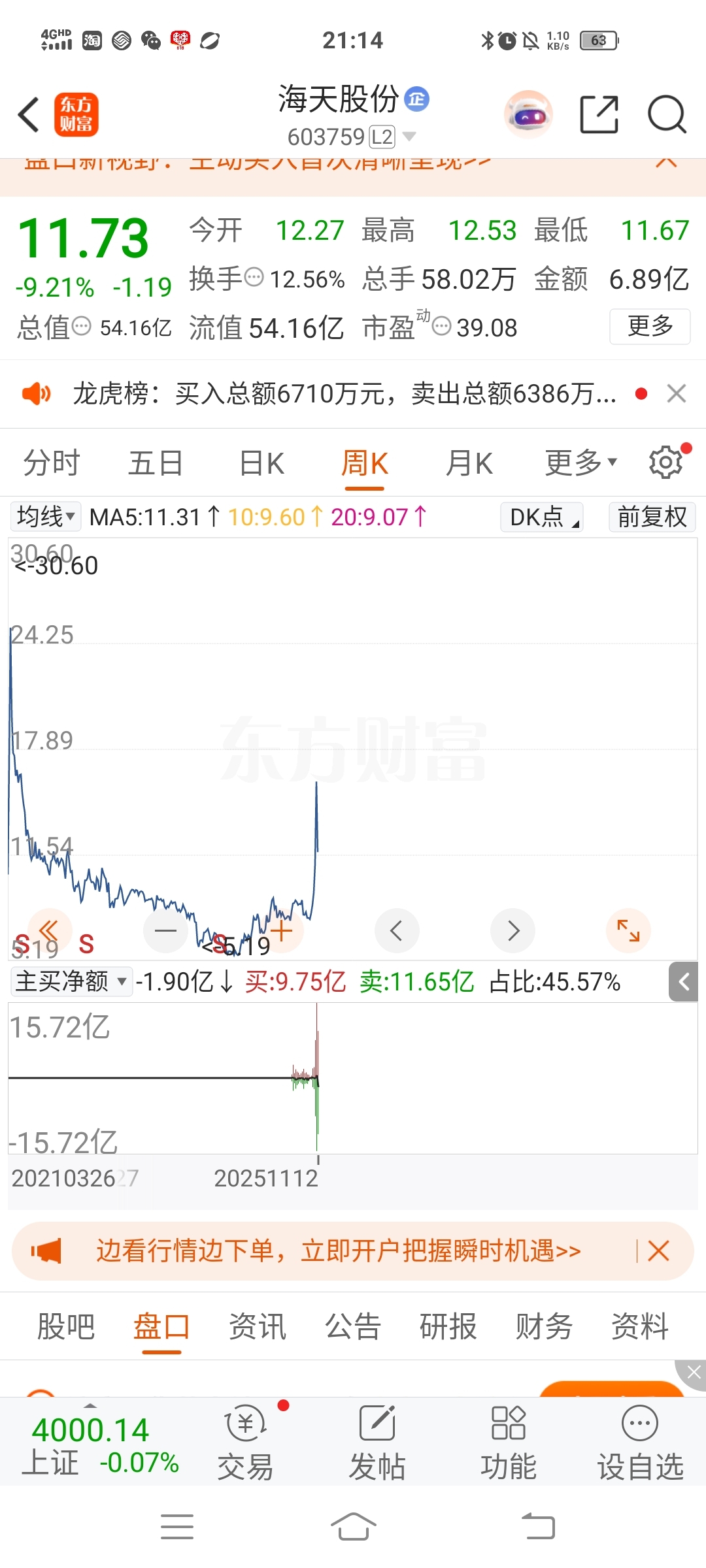 $海天股份(SH603759)$ 明天最少五,在阴跌三四天慢慢企稳,跌到9块 ,不信走着瞧,这家伙历史走势就是这样玩的